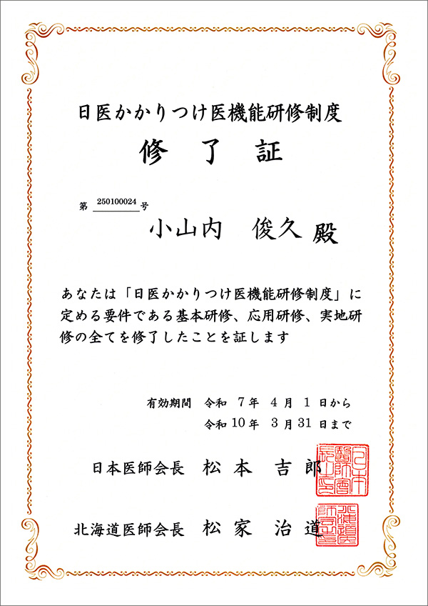 日本医師会の 「かかりつけ医機能研修制度」に基づく研修を修了しました。