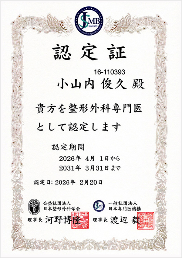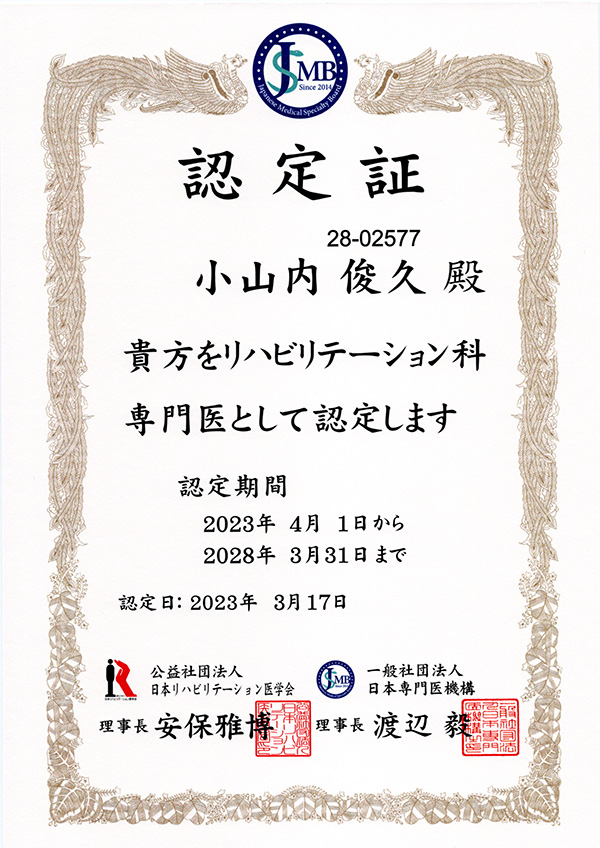 K&Aクリニック院長 小山内 俊 久 Osanai Toshihisa 略歴 ・1987年 医籍登録 ・1991年 医学博士号取得資格 ・日本専門医機構認定 整形外科専門医 認定証≫ リハビリテーション科専門医 認定証≫ ・日本リウマチ学会認定 リウマチ専門医 認定証≫ ************************************ ※ その他の資格 資格一覧表≫ ※ もっと詳しく Researchmap≫